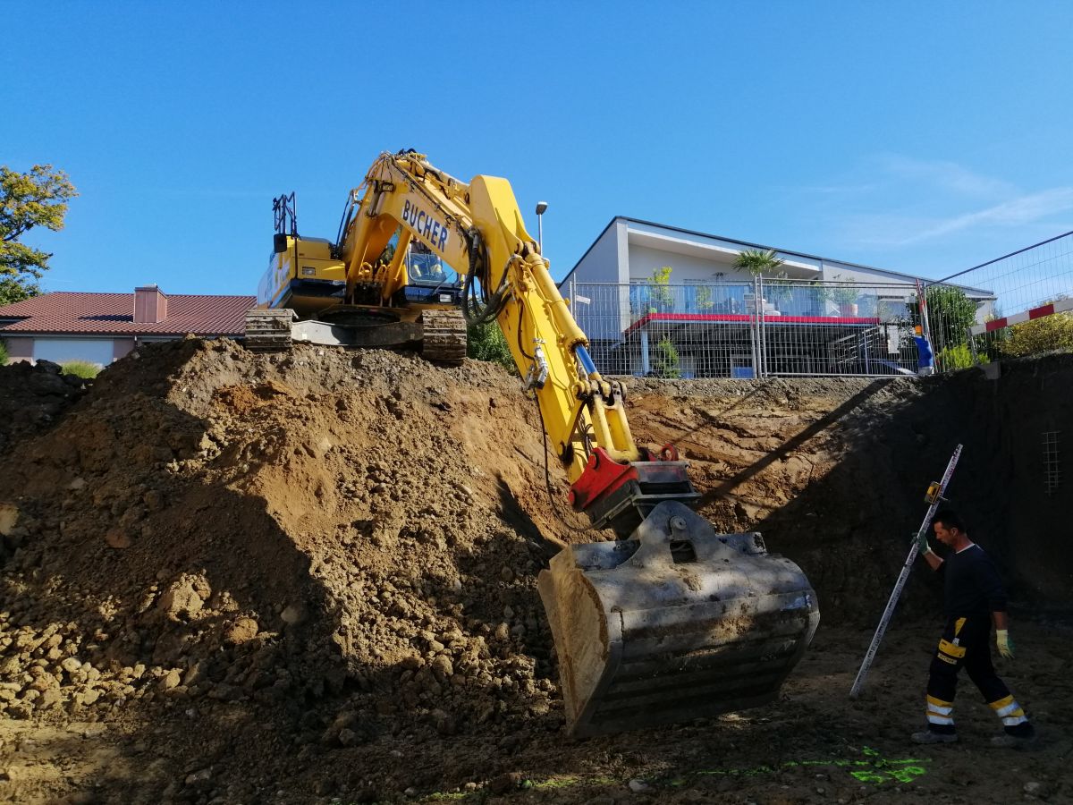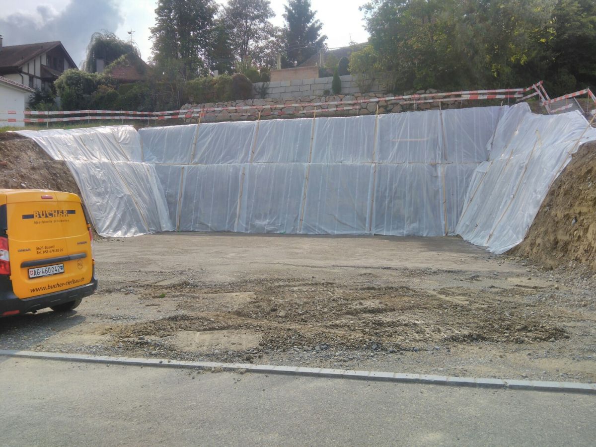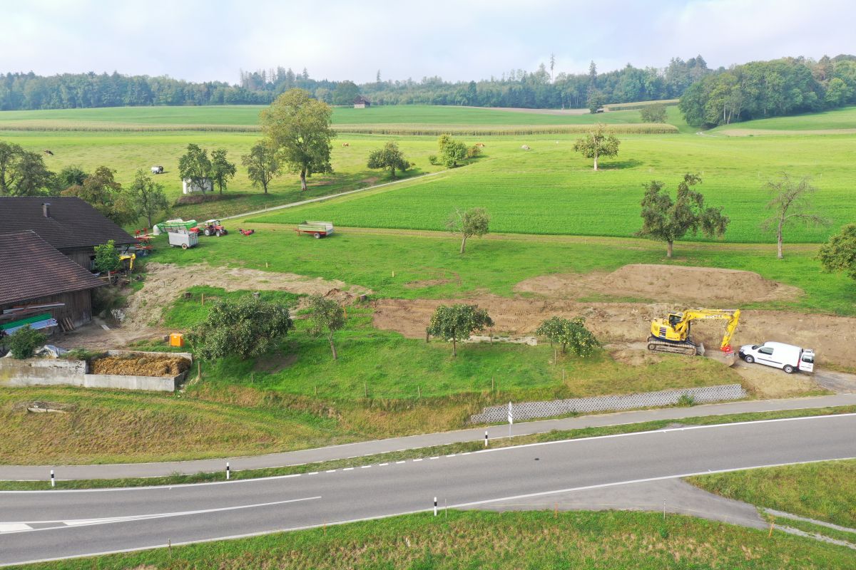 Mit unserem vielseitigen Maschinenpark führen wir Baugrubenaushubarbeiten in verschiedensten Grössen aus.