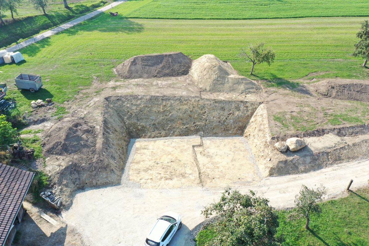 Mit unserem vielseitigen Maschinenpark führen wir Baugrubenaushubarbeiten in verschiedensten Grössen aus.
